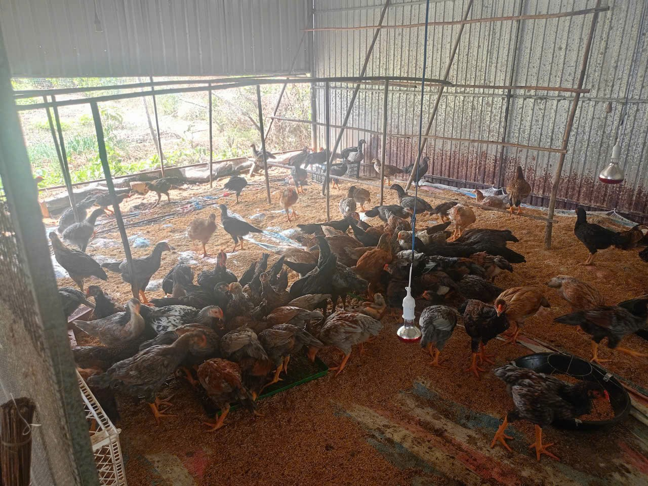 Sau 48 ngày nuôi, đàn gà sinh trưởng và phát triển tốt, đạt trọng lượng bình quân từ 1,0 – 1,2 kg/con. Tỷ lệ sống đạt 99%, cho thấy quy trình chăn nuôi phù hợp với điều kiện thực tế tại địa phương và ban đầu mang lại hiệu quả rõ rệt.